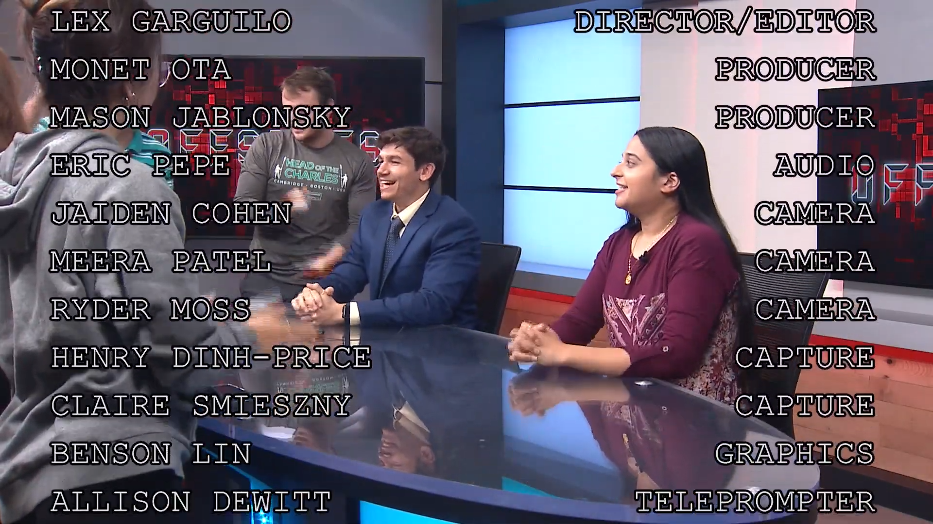 Boston University's student-run professional sports news show. This pre-recorded show airs on BUTV and is uploaded to Youtube. I served as the on-screen talent, teleprompter operator, technical director, camera operator, and audio control.